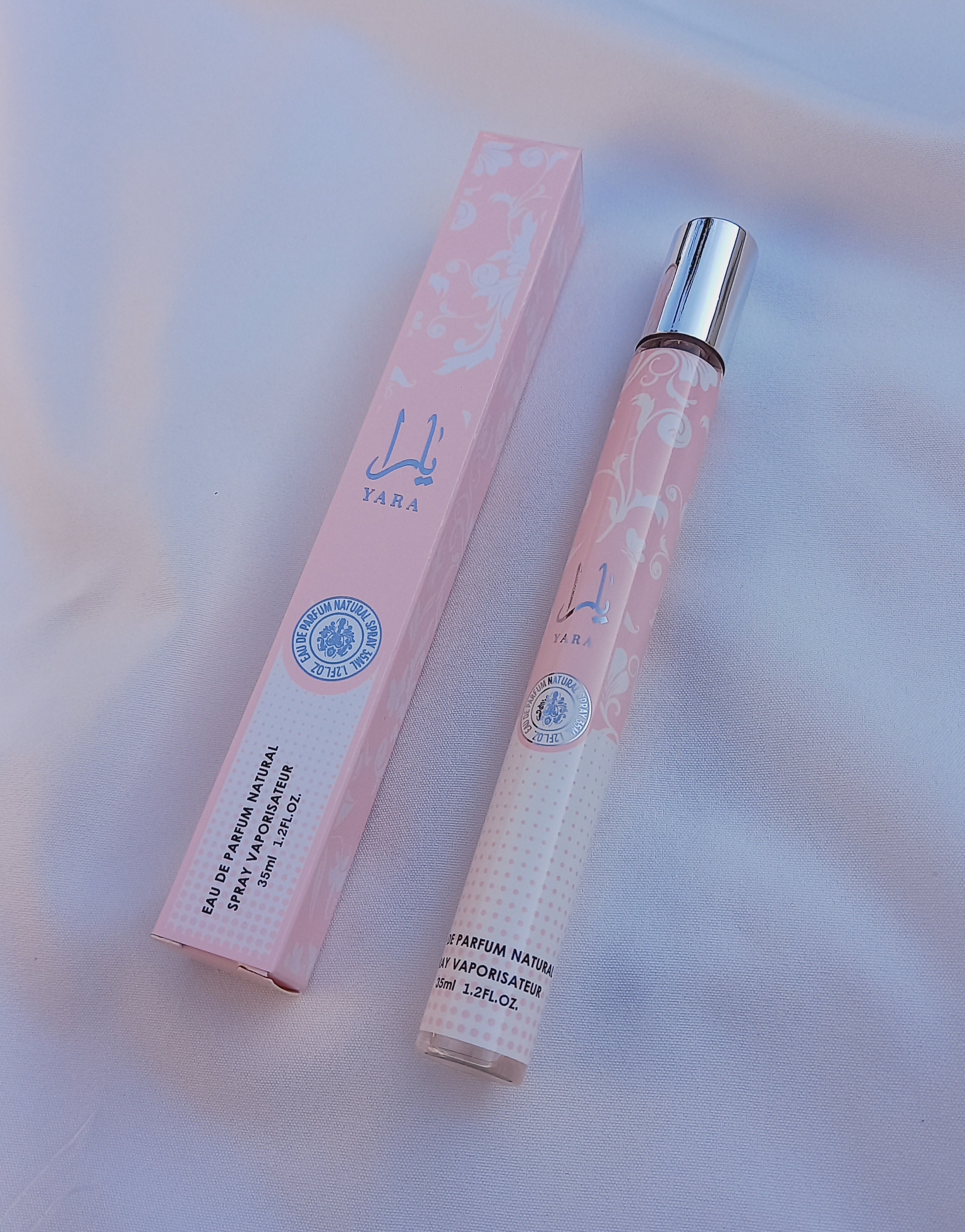 در ظاهر، بستهبندی یارا با ترکیب صورتی و سفید، کاملاً با روح رایحهی درونش هماهنگ است: رمانتیک، آرام و لوکس. طراحی بطری در نسخهی ۳۰ میلیلیتری رولی یا اسپری همراه یک پترن فانتزیِ برگمانند و درپوش نقرهای براق عرضه میشود که حس زیبایی و ظرافت را از همان نگاه اول منتقل میکند.